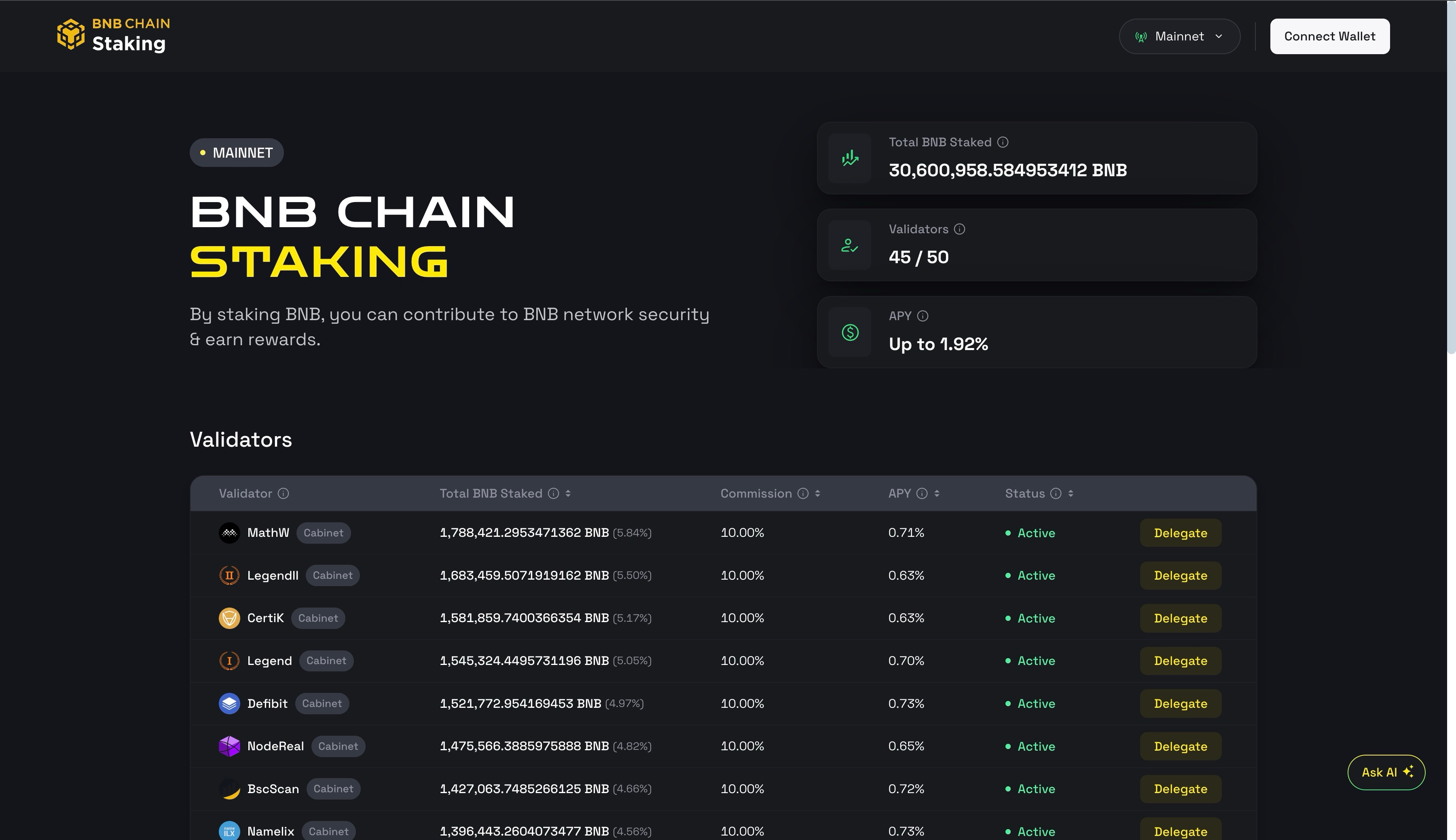Thus, the income of a BNB validator, who holds the minimum stake, is ~ 25,000 USD per year. Here’s the official guide on becoming a validator on BNB Chain.